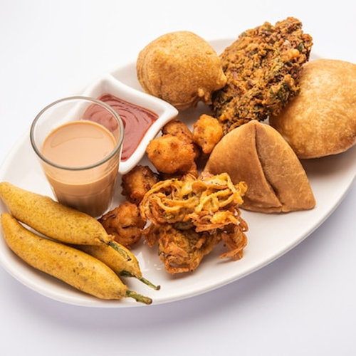 Veg PlatterA combination of vegetable appetizers like samosa, aloo tikki, vegetable, and paneer pakora